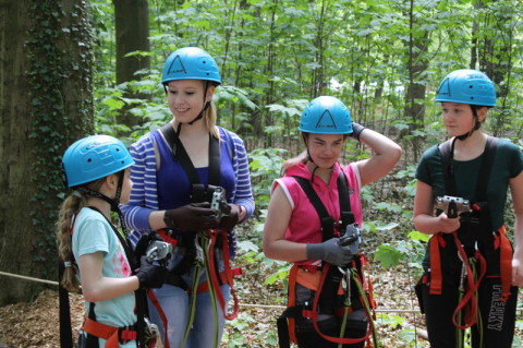 Die älteren Kinder und Jugendlichen und die erwachsenen Betreuer kletterten nach einem etwas einfacheren Übungsparcours gleich auf vier Meter Höhe und so manchem wurde es angst und bange, durch kippelige Fässer zu krabbeln, auf einer Toilette in schwindelerregender Höhe zu sausen, eine Kletterwand in zehn Meter Höhe seitlich zu überwinden oder sich bei einer flotten Seilfahrt im Seil hängen zu lassen! Fast allen gelang dies aber sehr gut. Alle Teilnehmer und auch die zuschauenden Eltern hatten viel Freude, lernten einander besser kennen und sich zu vertrauen und gingen mit gestärktem Selbstvertrauen nach Hause.